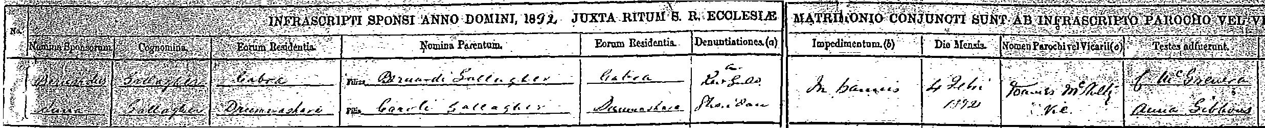 | Gallagher | Bernard | Son | RC | RW | 36 | Farmer's son | Married | Donegal | IE | |