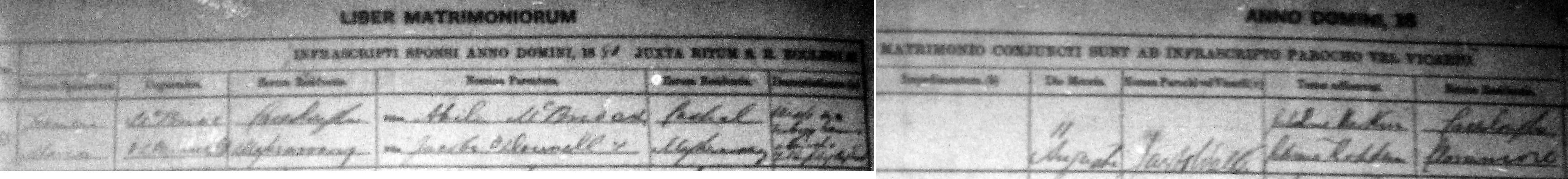 February 28 1867, in the Roman Catholic Church, Clondahorkey, by the Very Rev. Thomas Diver, P.P., assisted by the