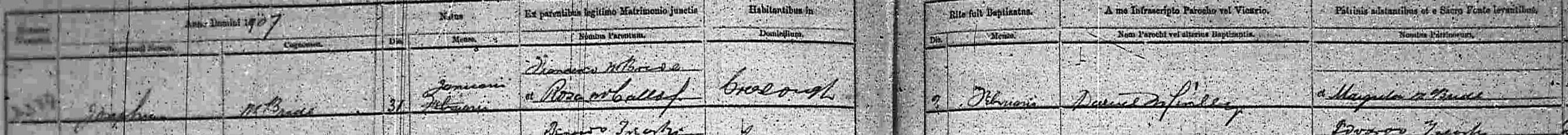 - Joseph b 31 Jan 1907, bapt Doe 2 Jan, Godmother Margaret McBride - see baptism register