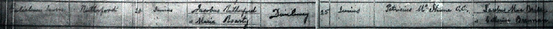 James Rutherford, a Protestant, baptised into the Catholic faith 14 Mar 1888, sponsor James MacBride - see baptism register
