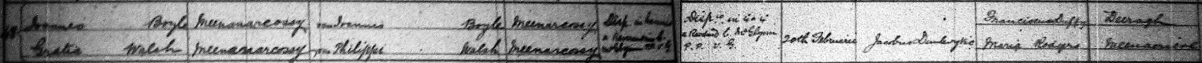 - James Boyle (John) married Anne Duffy (Edward) on 1 Jan 1868 in St