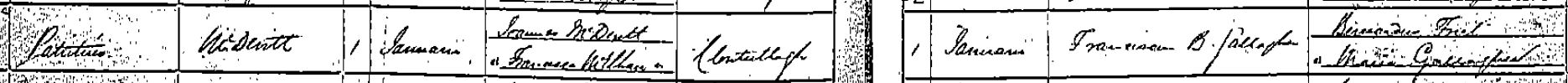John McDevitt, Clontallagh, son of Patrick, married Fanny Wilhare, Glenoory, dau of Bernard, 25 Apr 1880. Witnesses Michael McGee, Altaheerin, and Rose? McBride,