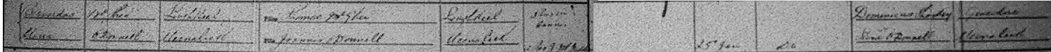 James O'Donnell, son of Manus O'Donnell and Hannah Sweeney (above) m Mary McCole, Lough Keel, dau of Patrick McCole and Sarah O'Donnell, 4 Feb 1884