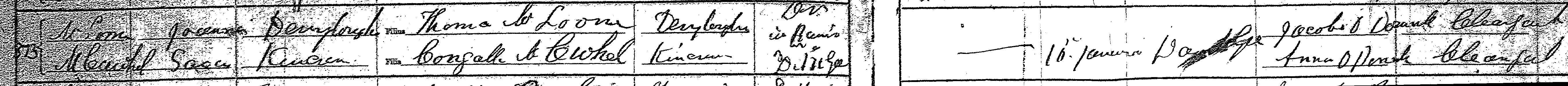 Cornelius McCahill, Kincrum, son of Charles, married Catherine Gallagher, Mulnamin More, dau of Edward, 3 Mar 1867