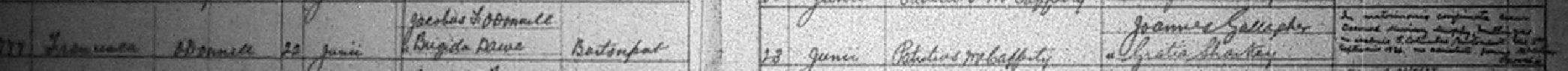 Frances (Fanny Nuala) b 22 Jun 1911, bapt 23 Jun, Godparents John Gallagher & Grace Sharkey - see baptism scan