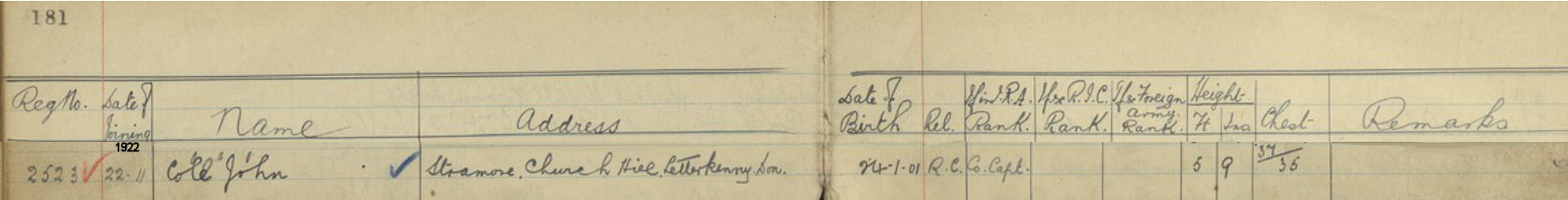 | Gallagher | Pat | Son | RC | RW | 23 | Farmer's son | Single | Donegal | IE | |||