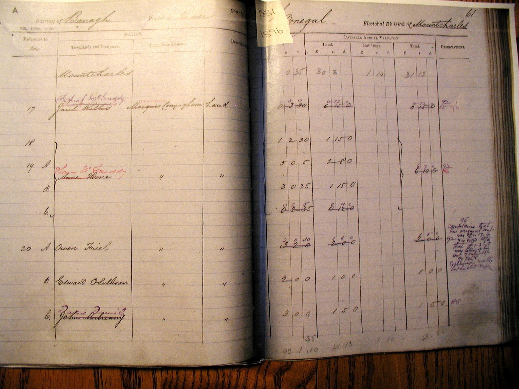 Valuation Book for Mount Charles Townland, Inver Parish, Co Donegal